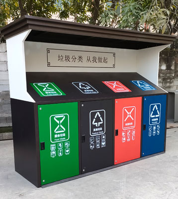 • 產品材質:城市花園小區大容量分類垃圾桶定點投放垃圾屋房站點整體尺寸制作需求可按地方標準要求定制,常用的制作材質有鍍鋅板、不銹鋼、戶外塑粉靜電噴涂,其工藝特點表現為較高的戶外適應性,表面涂層堅固,不易脫落,抗紫外線以及耐候性強。可回收物投口為藍色,其他垃圾為淺灰色,廚余垃圾綠色,有害垃圾為紅色,顏色搭配美觀,可配套洗手盆投放后清洗。.表面無毛刺、無披鋒,棱角和邊緣做圓角處理.