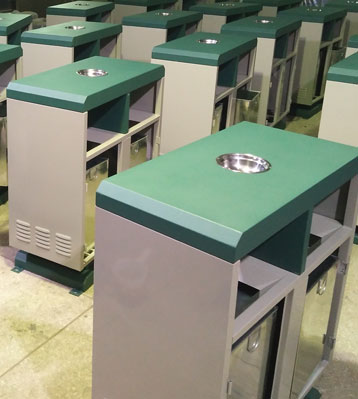 欣方圳鋼板戶外分類(lèi)垃圾桶車(chē)間一角